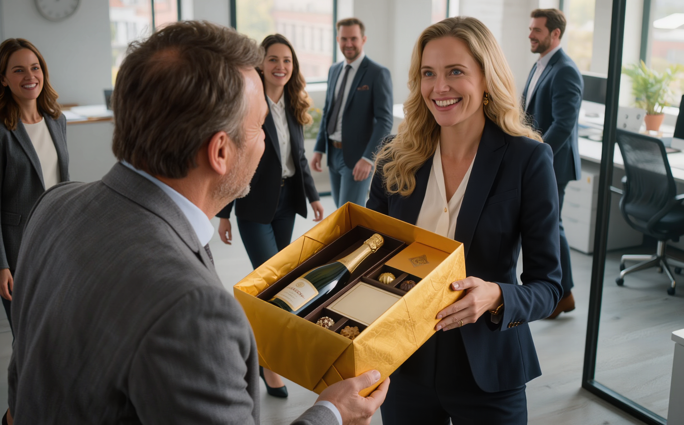 ❷ Geschenkkarton: Das Upgrade für Geschenke, die im Büro oder an der Offsite-Location übergeben werden.