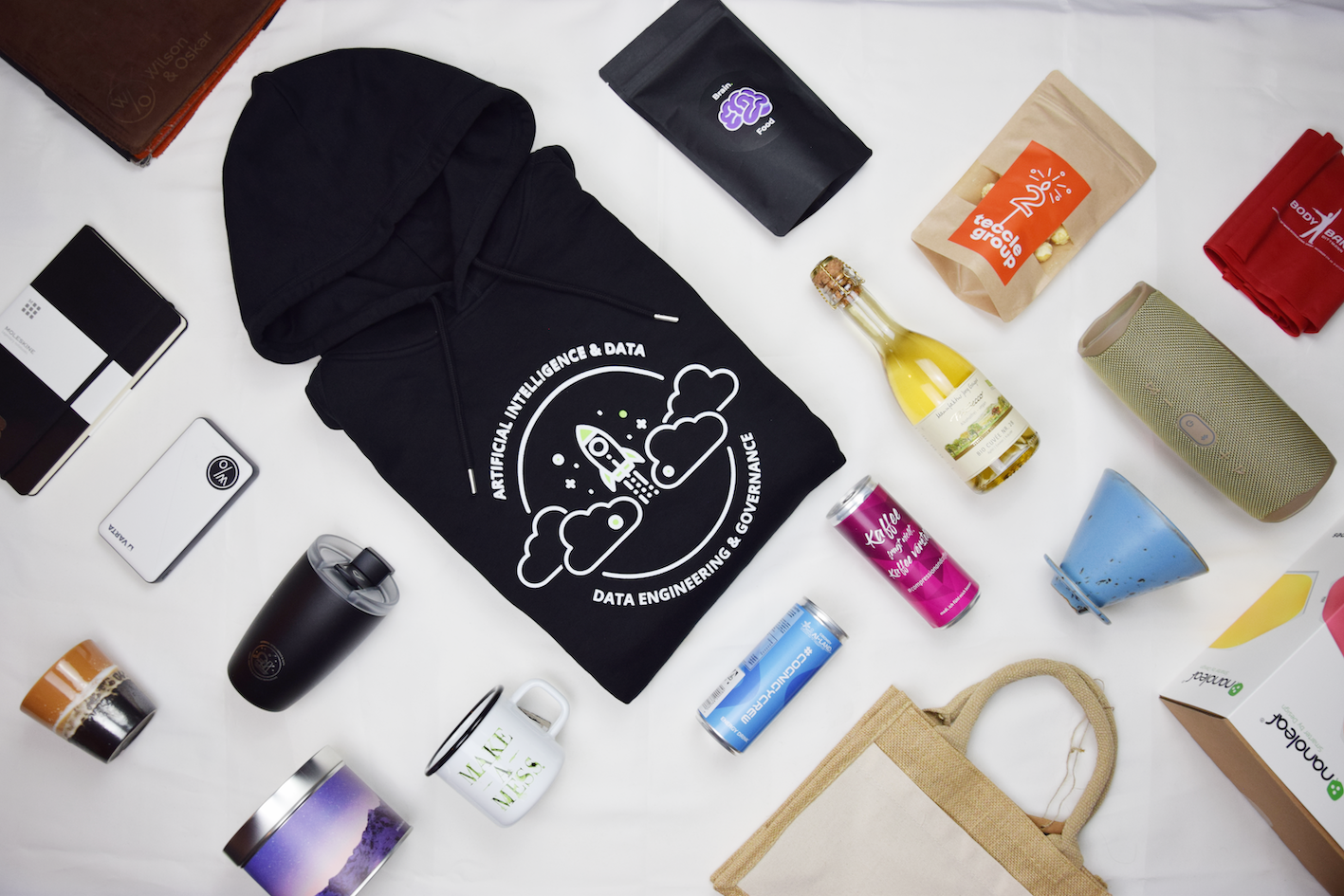 Hochwertige Produkte mit Logo. Als kreatives Präsent, Goodie für Mitarbeitende und Streuartikel und Give Aways für Messen.